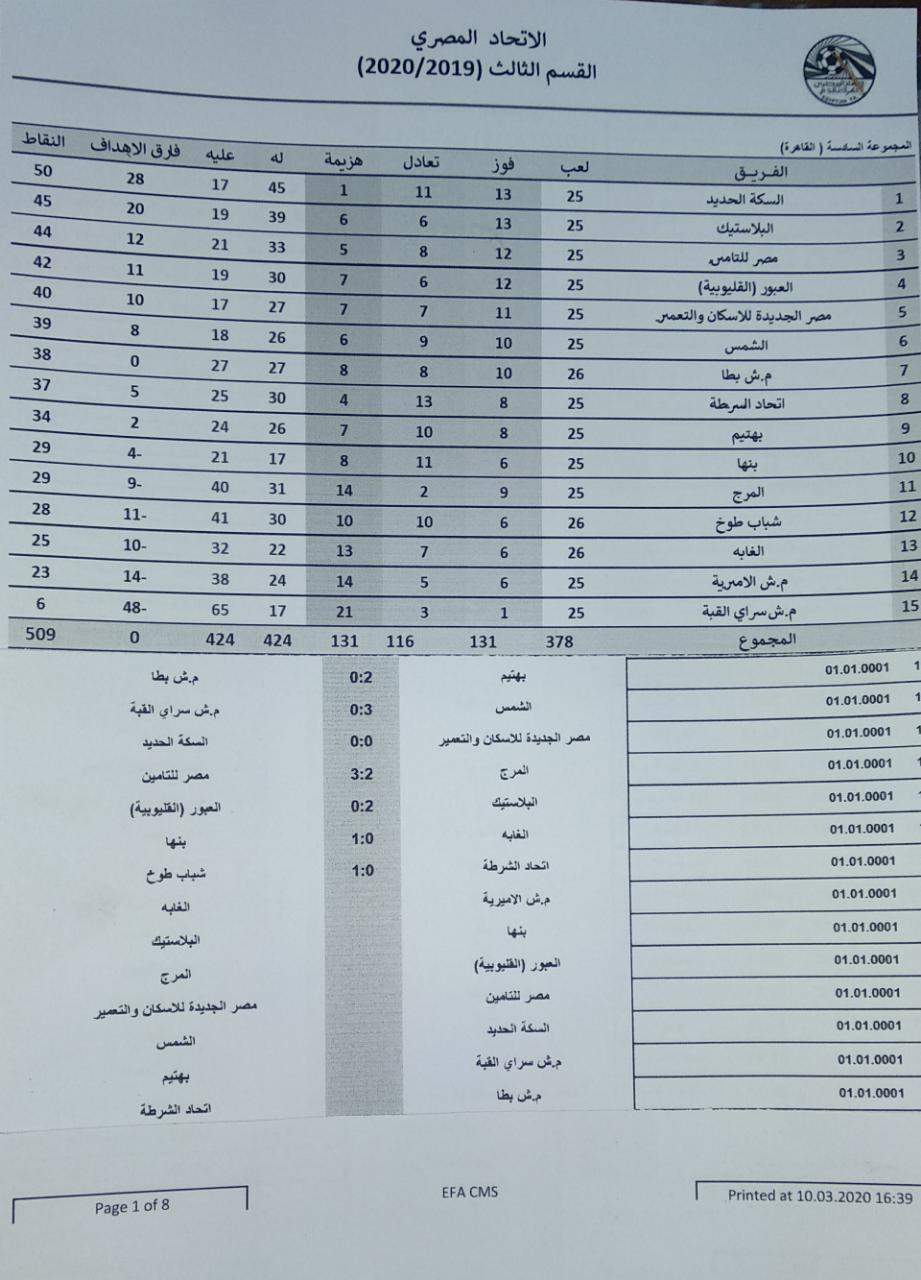منطقة القاهرة لكرة القدم تعلن جدول المباريات المتبقية للقسم الثالث