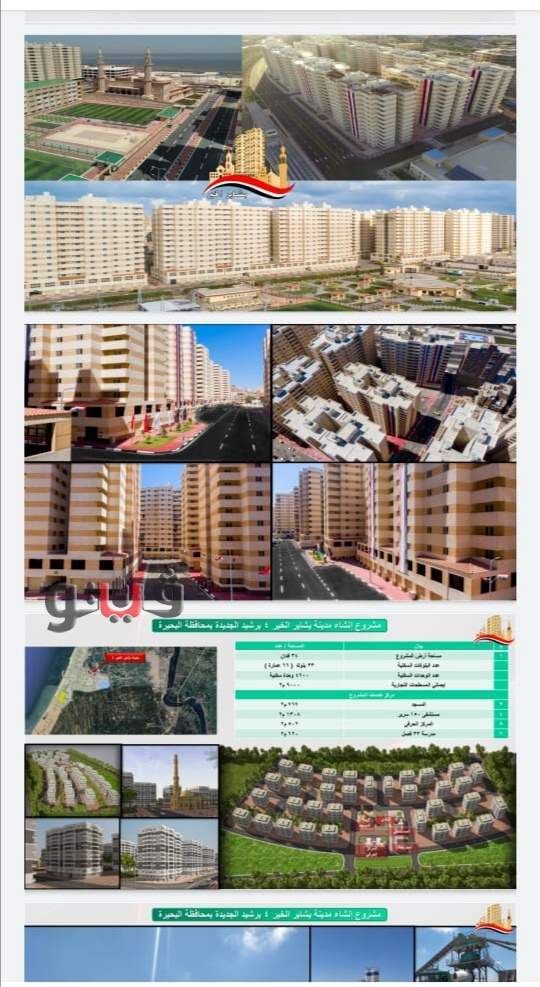 ومشروع إنشاء مدينة بشاير الخير 5 بالقباري في الإسكندرية بمساحة 105 أفدنة بطاقة 15500 وحدة سكنية وحوالى 105 ألف متر مسطح تجارى بتكلفة إستثمارية حوالى 6 مليار جنيه والمخطط نهو كافة الأعمال به نهاية العام الجاري .
