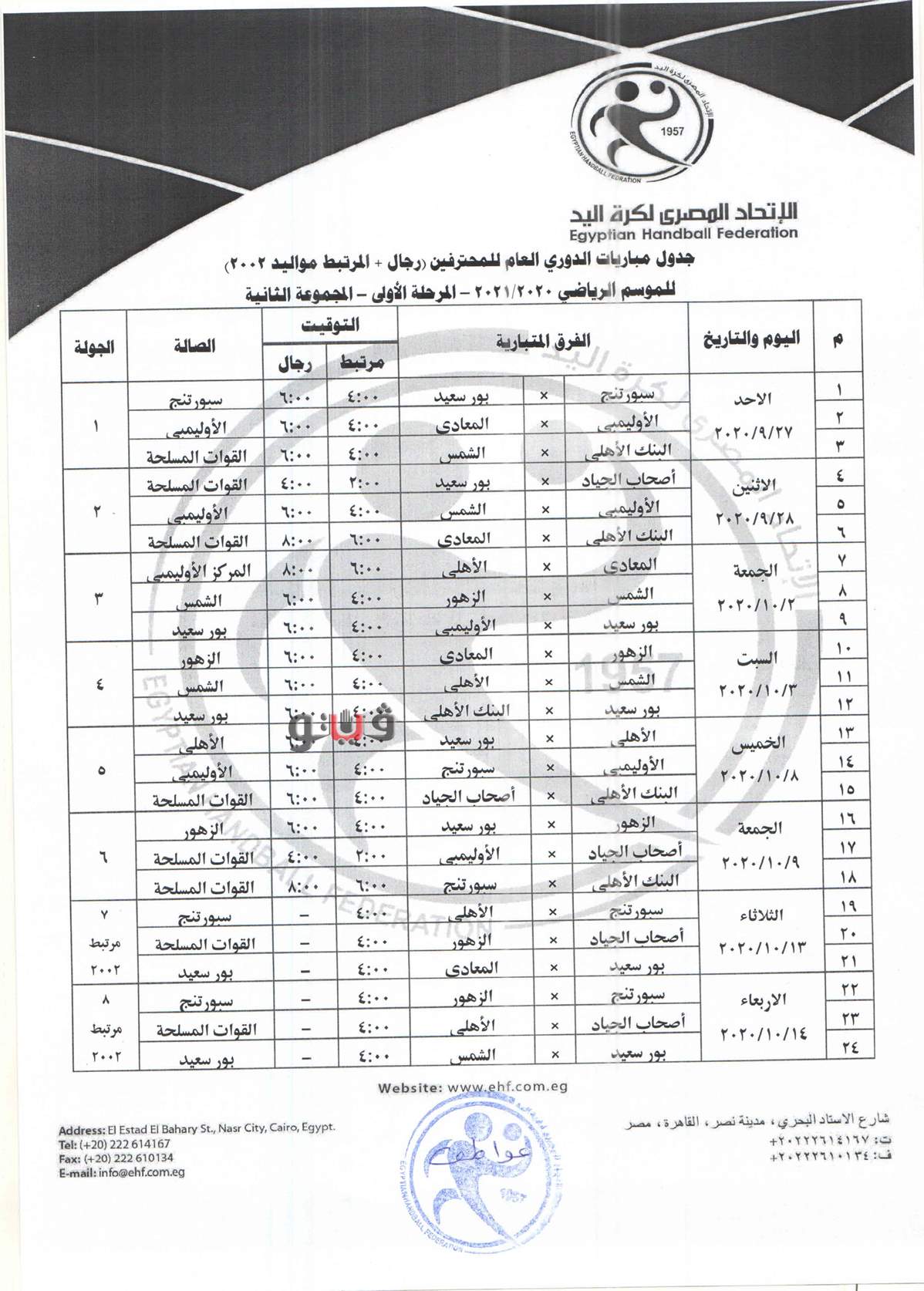 فيما جاء في المجموعة الثانية الأهلي وسبورتنج والبنك الأهلي والأولمبي وأصحاب الجياد والزهور والمعادي وبورسعيد والشمس.
