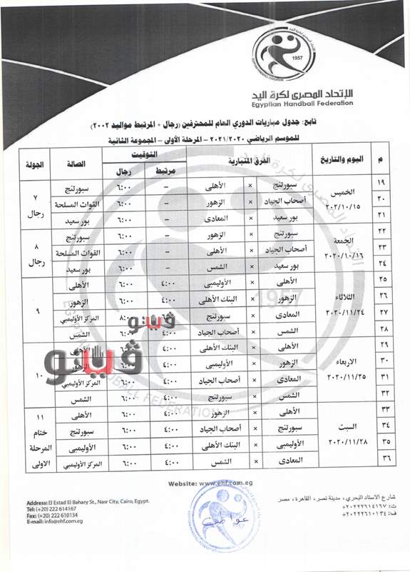 دوري المحترفين لكرة اليد.. جدول مباريات المجموعة الثانية
