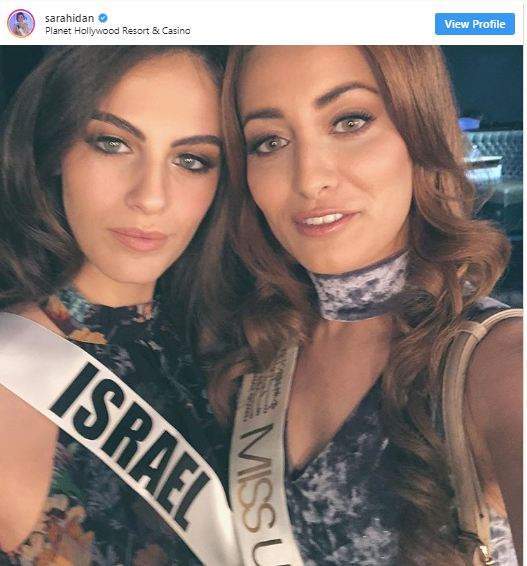 كما سبق أن نشرت سارة عيدان صورة سيلفي التقطتها مع ملكة الجمال الإسرائيلية هدار جندلسمان خلال المسابقة عام 2017، ونشرتها عبر حسابها على موقع "إنستجرام"، وعلقت عليها: "تحية سلام وحب من ملكتي جمال العراق وإسرائيل"، وانهالت عليها التعليقات الغاضبة.