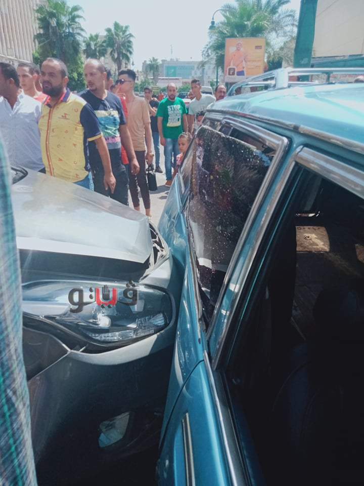 وكان الاجهزة الامنية تلقت اخطار من ادارة شرطة النجدة ، بورود بلاغا من اهالى المنطقة يفيد بتصادم سيارتين بمنتصف الطريق والتسبب فى شلل الحركة المرورية بالمنطقة.