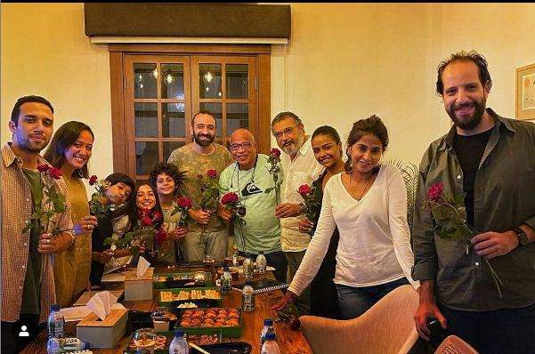 الشخصي على موقع الصور الشهير "انستجرام"، صورة تجمعه بفريق عمل فيلمه الجديد "بره المنهج".
