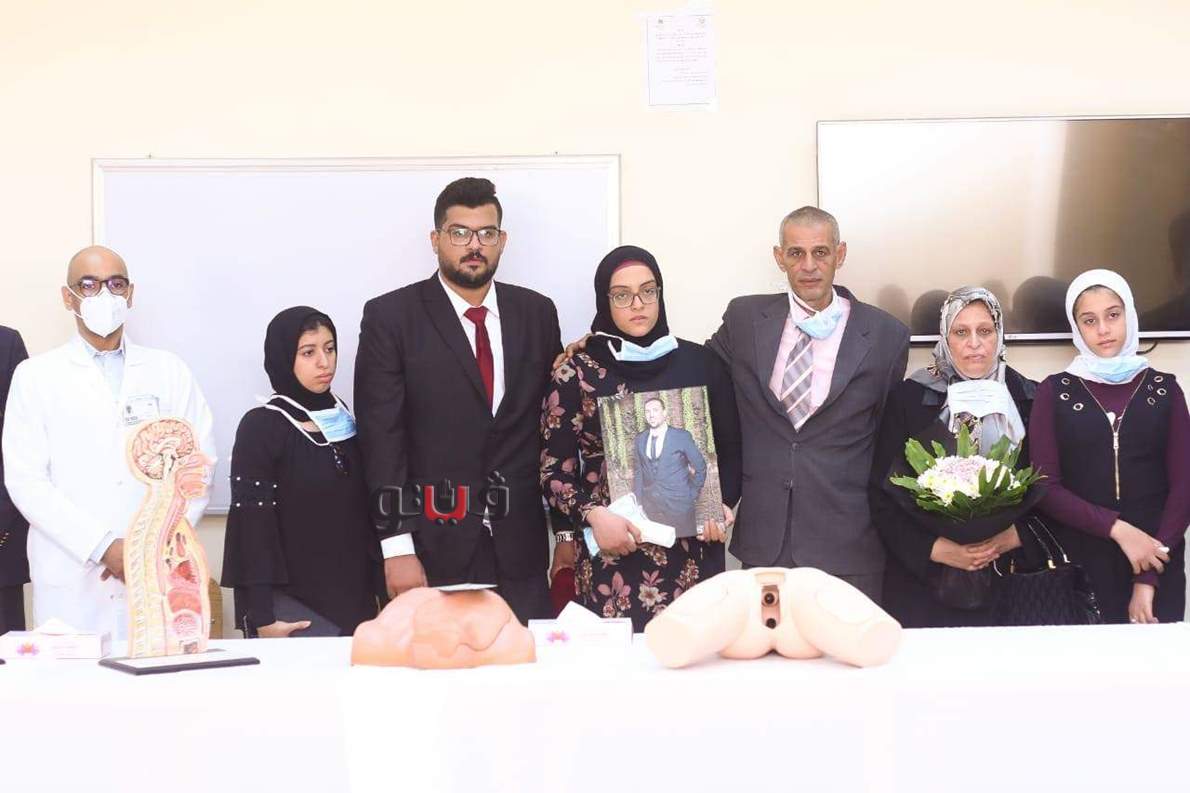 وقام الدكتور محد صفوت مدير عام مستشفى سعاد كفافي الجامعي، بتسليم أسرة الشهيد الطالب محمد أشرف الجمل، درع تكريم كُتب عليه «عشّت معنا طالبا وتركتنا معلما»، تخليدا من المستشفى لدور الشهيد وتكريما لأسرته.