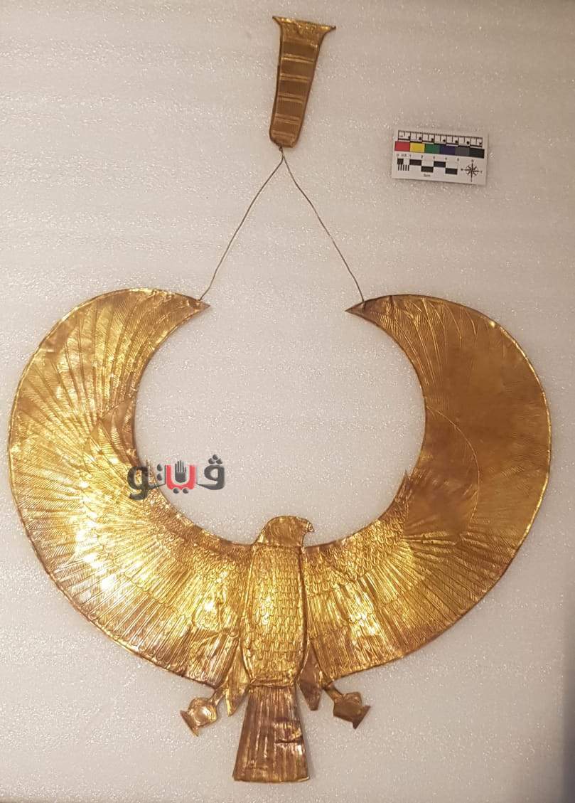 وأشار الدكتور الطيب عباس مدير عام الشئون الأثرية بالمتحف المصري الكبير، أن تلك القطع تضم ٥٤ قطعة اثرية من مجموعة الملك توت عنخ امون تحتوي علي مجوعة من الحلي والقلائد الذهبية وكذلك تمثال من الخشب المذهب يصور الملك توت عنخ آمون على ظهر فهد ويظهر الملك واقفا، وساقه اليسرى تتقدم يمناه على قاعدة مستطيلة الشكل مثبتة على ظهر الفهد، ويمسك الملك في إحدى يديه بعصا، وفي الأخرى يمسك بمذبة ويرتدي الملك التاج الأبيض لمصر العليا، وعلى جبينه الصل المقدس وعقد عريض يغطى صدره وكتفيه وينتهي بصف من حبات الخرز.