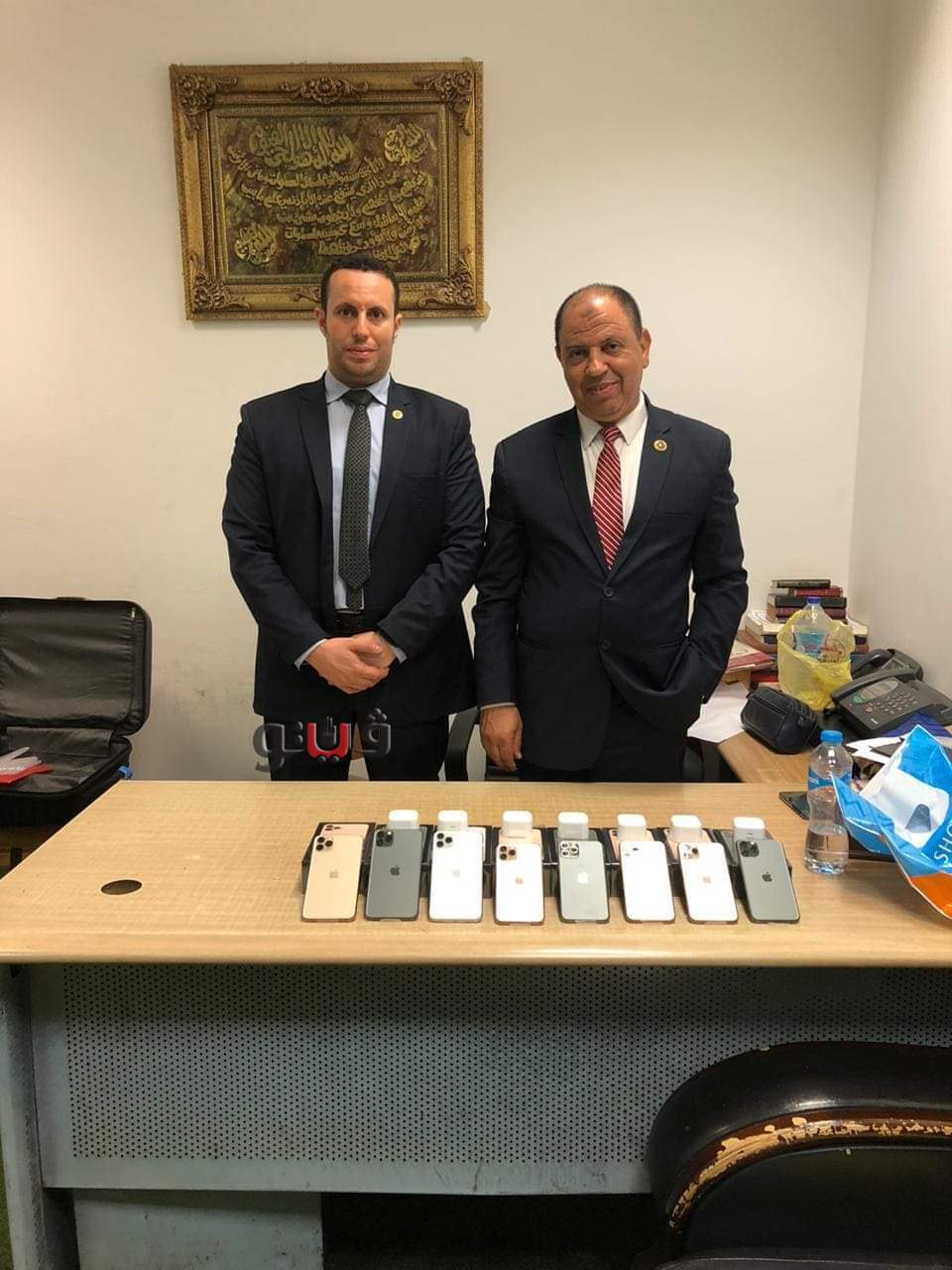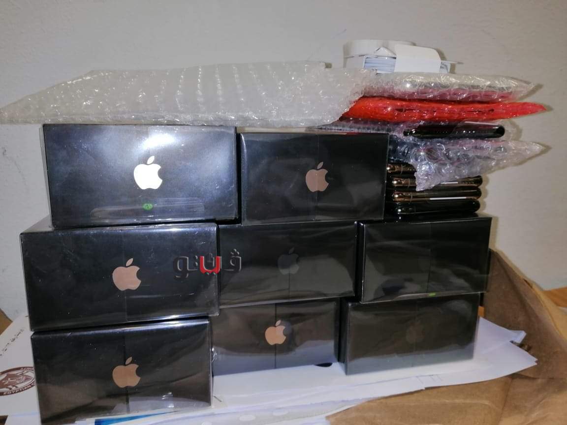 وفى أثناء إنهاء إجراءات تفتيش الركاب القادمين على رحلة طائرة خطوط طيران طائرة فلاى دبي، تم الاشتباه في راكب وبتفتيشه ذاتيا تبين وجود 8 علب هواتف آيفون فارغة في حقائبه وبتفتيشه ذاتيا تبين وجود 8 هواتف محمولة ماركة آيفون مخبئة وملصقة حول جسده، وتبلغ قيمة المضبوطات 135 ألف جنيه.