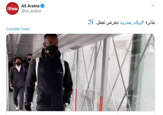 وبحسب الحساب الرسمي لصحيفة AS الإسبانية باللغة العربية، فإن الحساب الرسمي لـ ريال مدريد بث فيديو على موقع تويتر يظهر فيها وصول اللاعبين إلى المطار في الحادية عشرة والنصف تقريبًا من صباح اليوم، وبعدها نشرت إذاعة سير خبرًا تؤكد فيها تأجيل سفر البعثة بسبب عطل في الطائرة.