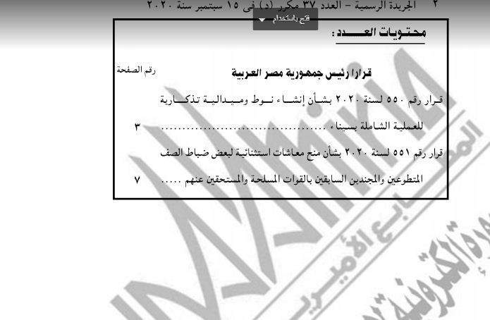 مكرر (د)، والصادر في 15 سبتمبر الجاري، قرار رئيس الجمهورية رقم 550 لسنة 2020