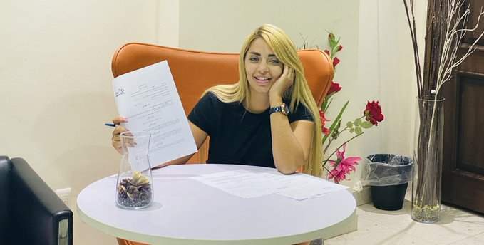 على الصور قائلة: "انهارده مضيت عقد أول رواية ليا في تاريخ الكتابة.. حلم جديد