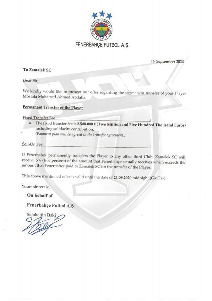 الزمالك يرفض رحيل مصطفى محمد إلى فناربخشة مقابل 2.5 مليون يورو .. مستند