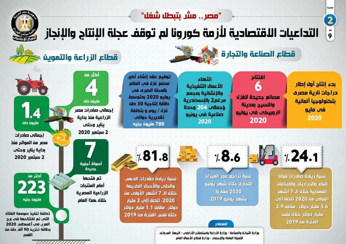 التداعيات الاقتصادية لأزمة كورونا لم توقف عجلة الإنتاج والإنجاز | إنفوجراف