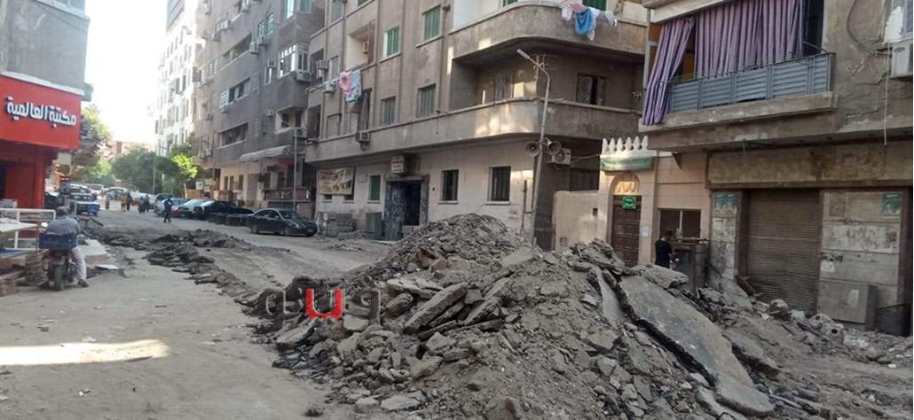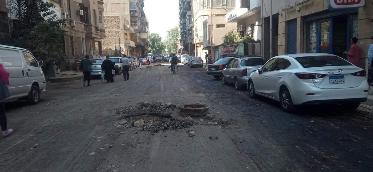 رفع بلاعات الصرف بشارع همدان بالجيزة تمهيدا لعمل الأسفلت | صور