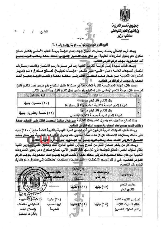 وأشارت الوزارة إلى أنه سيتم السداد بالبريد أو فوري بالرقم القومي للطالب لحساب صندوق دعم وتمويل المشروعات.