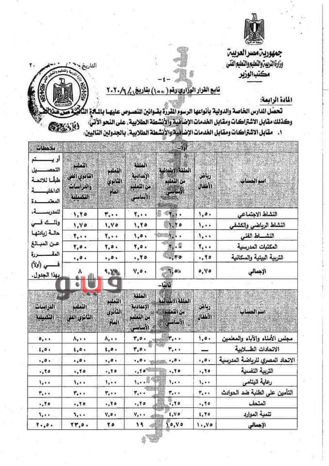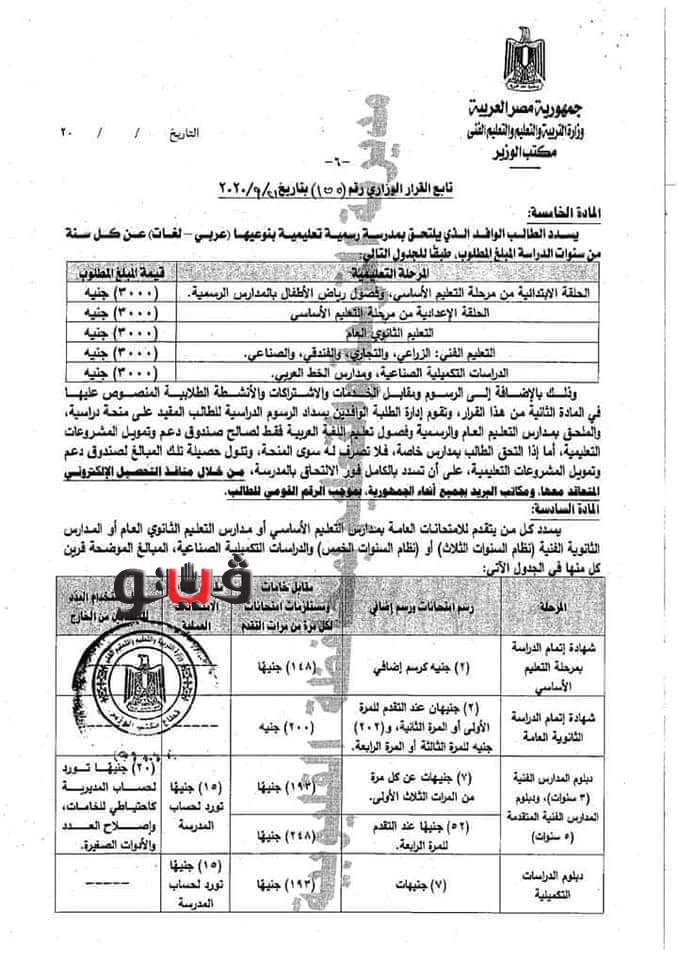 النشرة الكاملة لمصروفات المدارس الحكومية