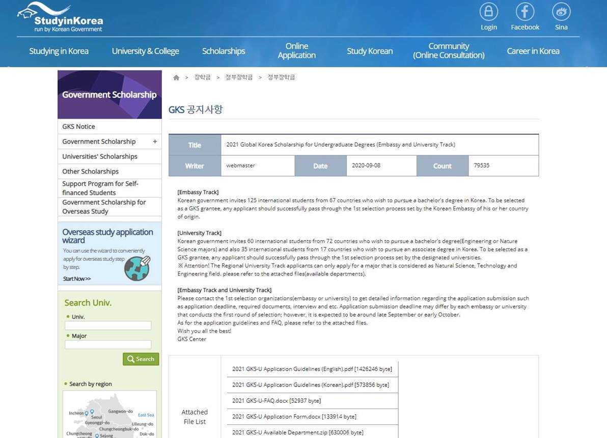 أعلن المركز الثقافي الكوري بالقاهرة، عن فتح باب التقدم لمنحة الحكومة الكورية لمرحلة البكالوريوس لعام 2021.