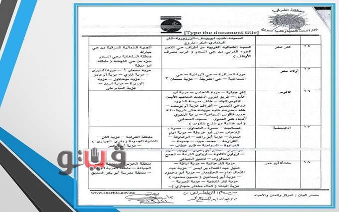 وكان محافظ الشرقيه قد كلف مدير الاداره العامة للتخطيط والتنمية العمرانيه بديوان عام محافظة الشرقية بإعداد مذكره بشأن التصالح موضحاً بها بعض العزب والتوابع بالمدن والمتضرر الأهالي بها من إحتساب قيمة التصالح بالمثل للأسعار بالمدن.