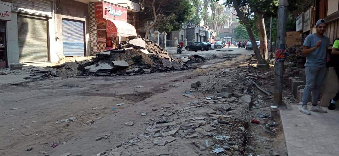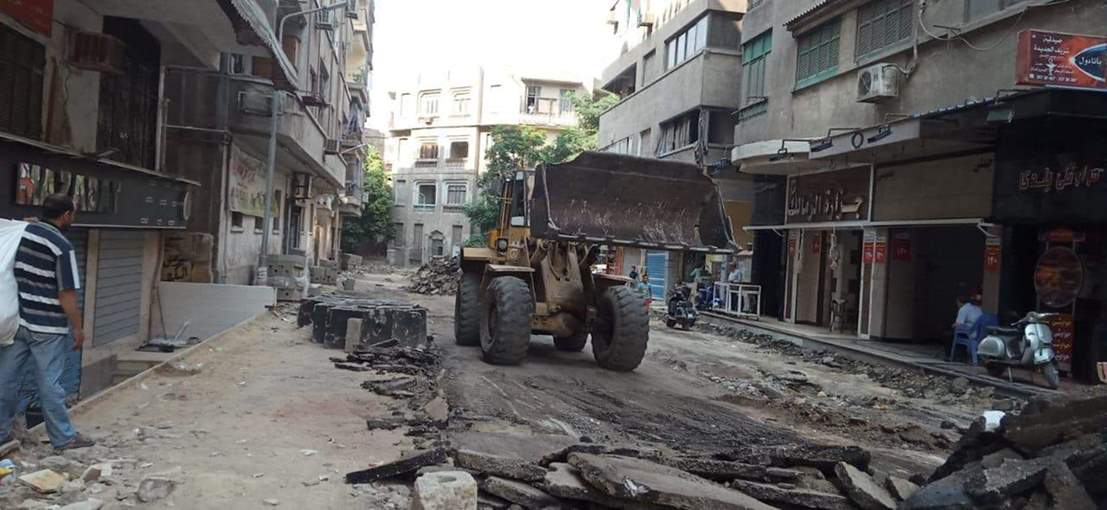 طبقه الأسفلت القديمه بشارع قره بن شريك ورفع المخلفات الناتجه من الاعمال وجارى استكمال