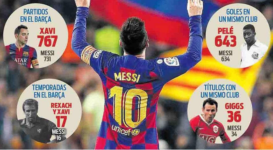 يعتبر ميسي الهداف التاريخي لبرشلونة، لكنه يحتاج للعب 37 لقاء هذا الموسم ليصبح اللاعب الأكثر مشاركة في تاريخ برشلونة، حيث شارك في 731 لقاء ويتقدم عليه تشافي هيرنانديز، الذي مثل برشلونة في 767 لقاء.