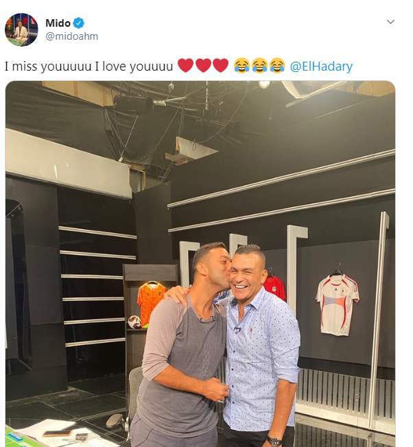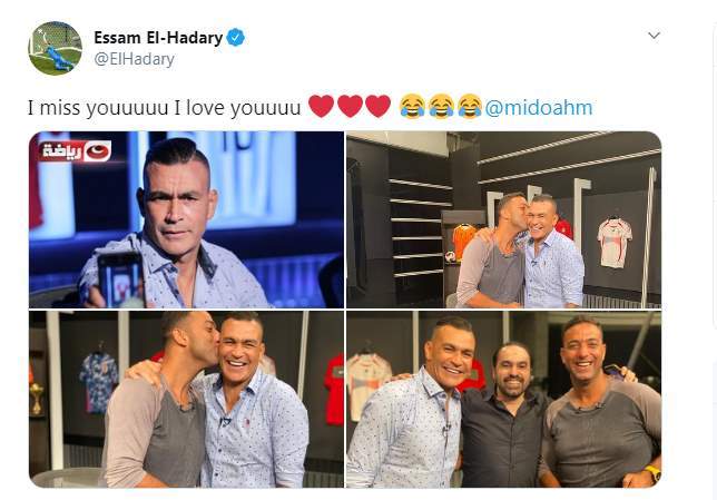 وكتب عصام الحضري تغريدة على تويتر لـ أحمد حسام ميدو قائًلا: "أفتقدك وأحبك يا ميدو".