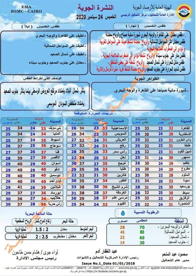 وفيما يلى بيان بدرجات الحرارة المتوقعة اليوم على مدن ومحافظات مصر..