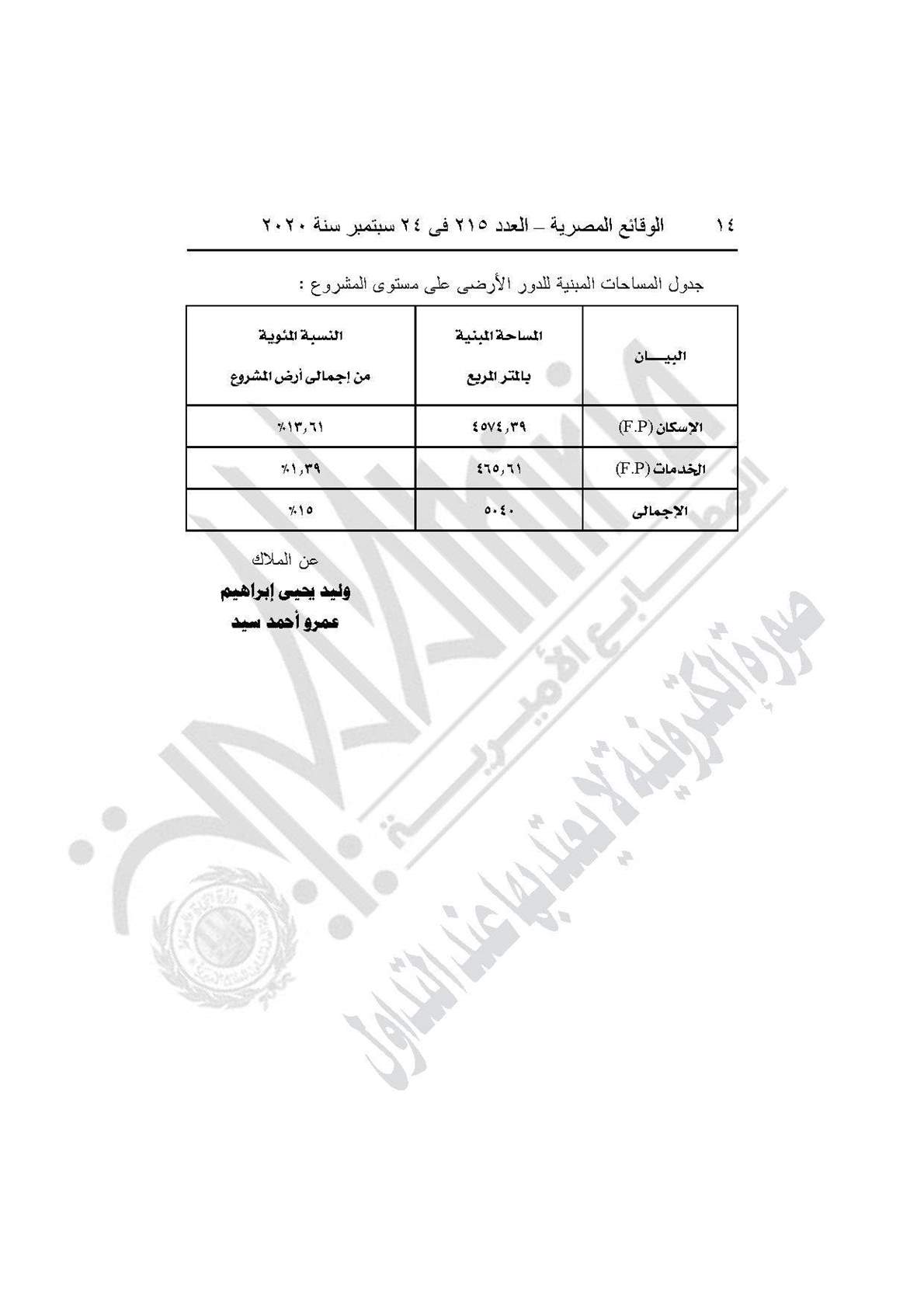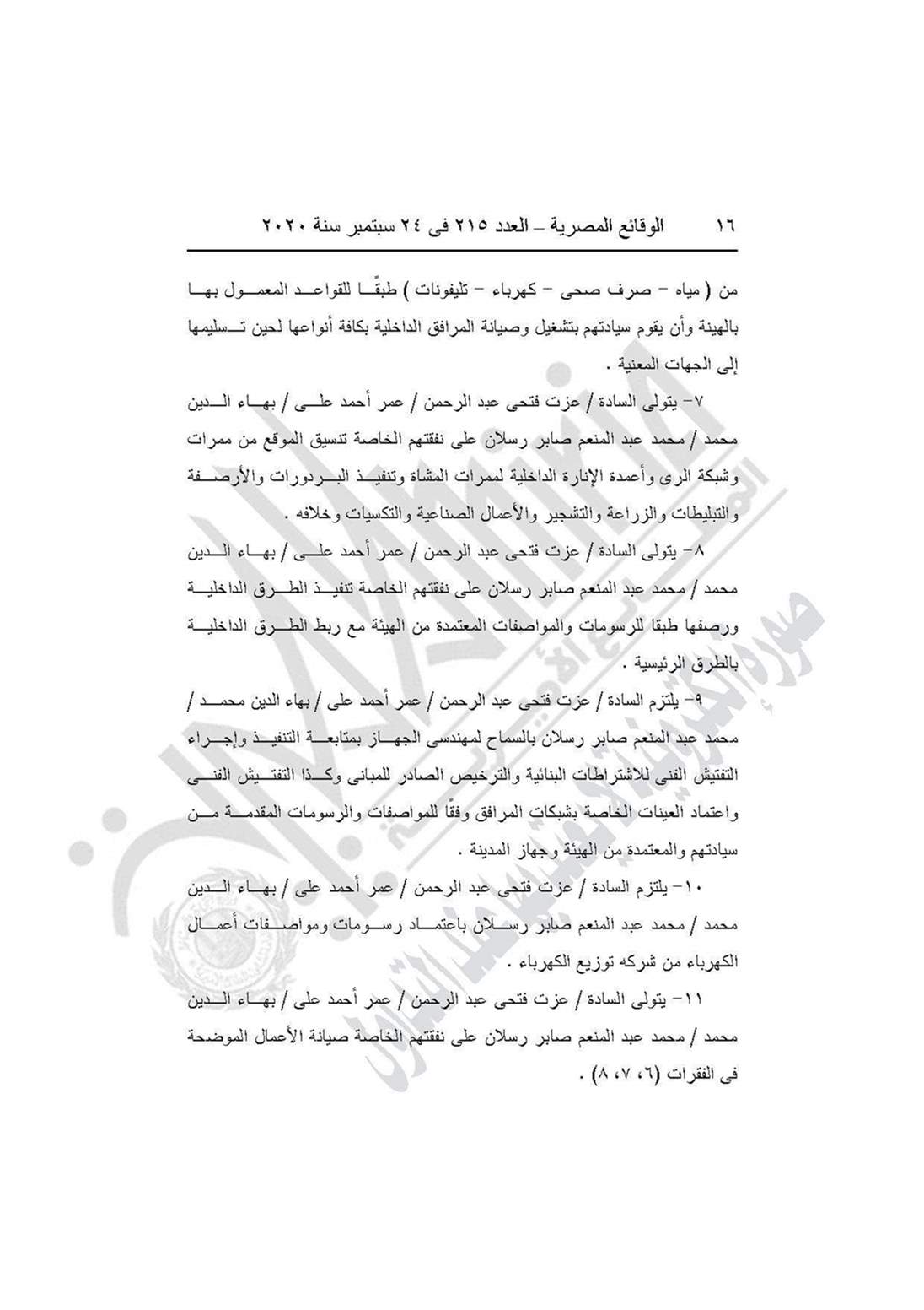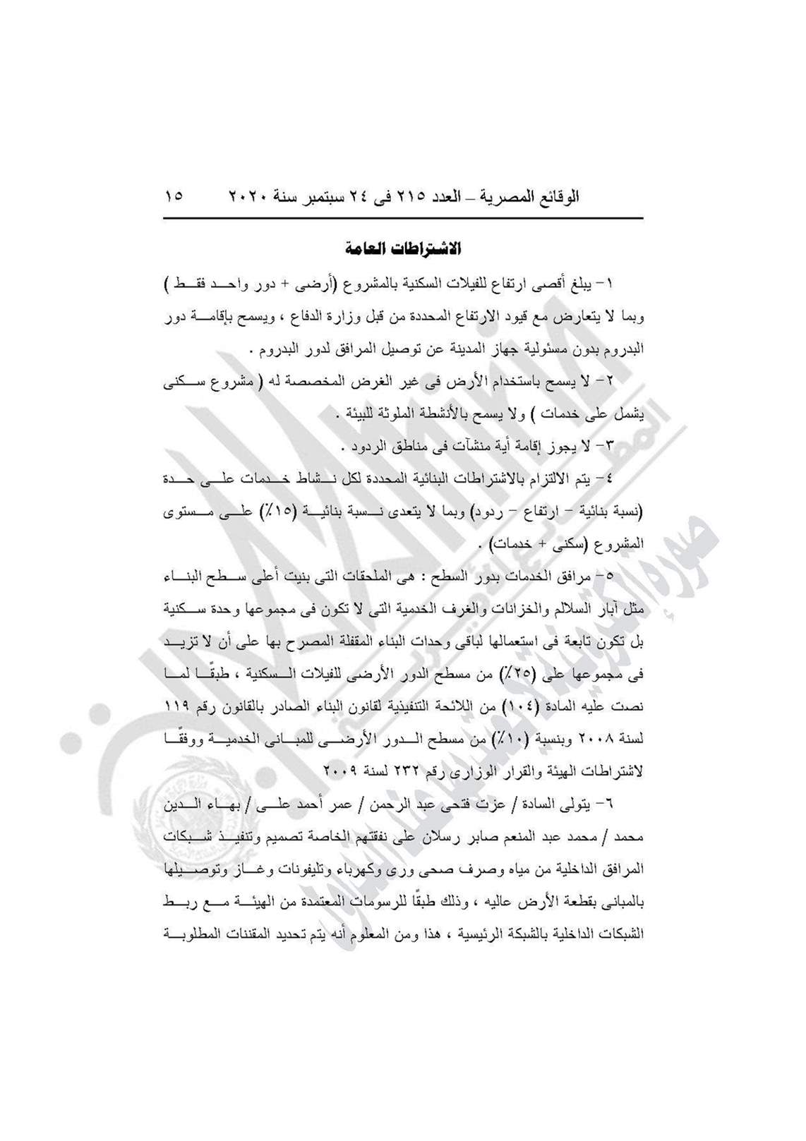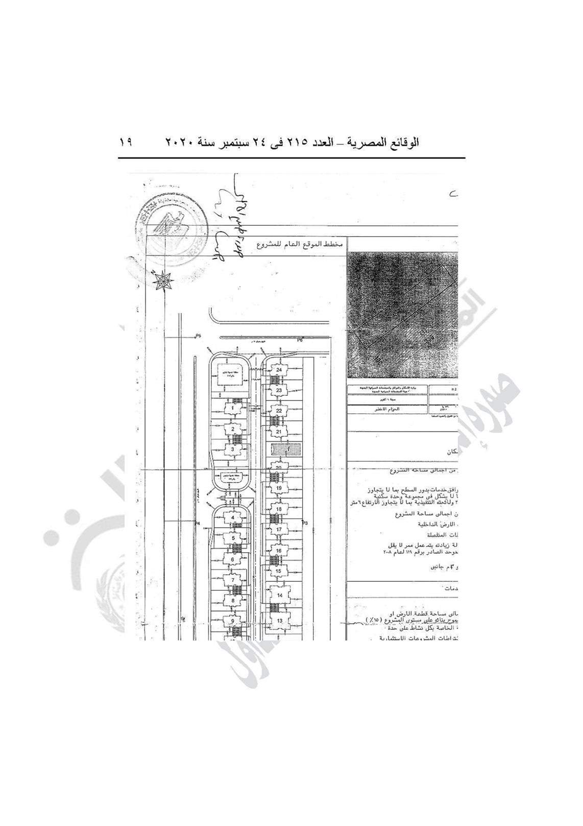 - القرار رقم 530 لسنة 2020، باعتماد تخطيط وتقسيم قطعة الأرض رقم (م2) بمساحة 8 أفدنة الواقعة بالحوض رقم 3 بالحزام الأخضر بمدينة 6 أكتوبر لإقامة نشاط (سكني- خدمات) بمقابل نقدي.