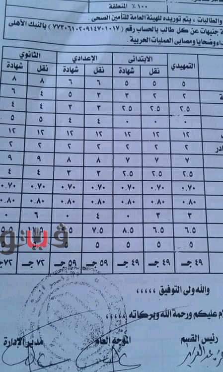 - التعليم الثانوي من الصف الأول حتى الصف الثالث 72 جنيها.