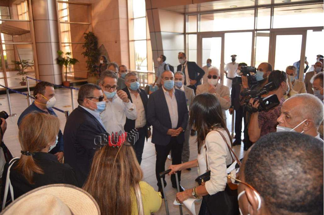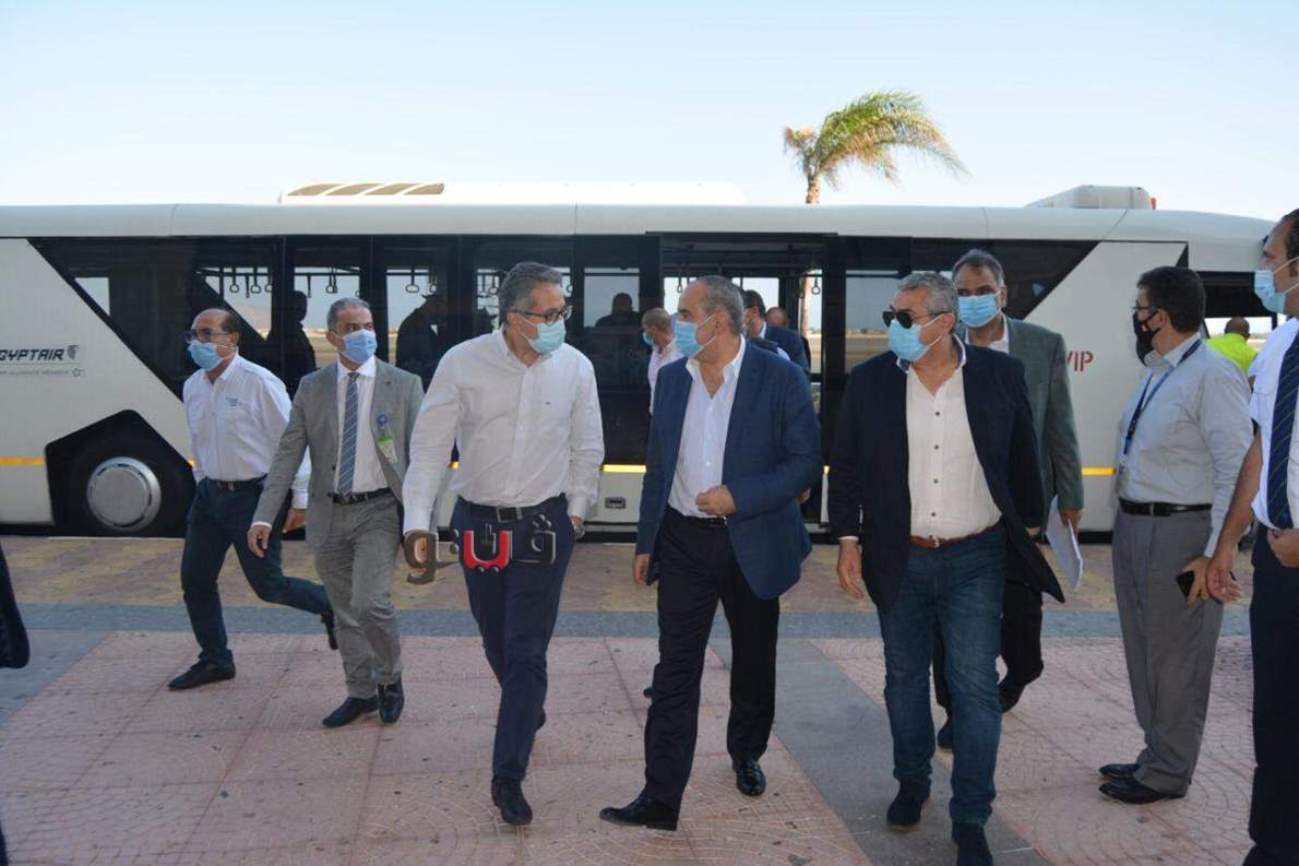 تفقد اليوم الطيار محمد منار وزير الطيران المدني والدكتور خالد العنانى وزير السياحة والأثار والدكتورة ياسمين فؤاد وزيرة البيئة، والدكتور أسامة هيكل وزير الدولة للإعلام والطيار منتصر مناع نائب وزير الطيران، مطار شرم الشيخ الدولى يرافقهم 30 من سفراء الدول الأجنبية للتعرف على الإجراءات الإحترازية والتدابير الوقائية المطبقة بالمطار للحد من فيروس كورونا المستجد، وذلك بحضور السفير الدكتور بدر عبدالعاطي مساعد وزير الخارجية للشئون الأوربية و باسم عبد الكريم مساعد وزير الطيران للشئون الدولية والإعلام ، وكان فى استقبالهم اللواء خالد فودة محافظ جنوب سيناء واللواء خالد عبد السلام مدير المطار.
