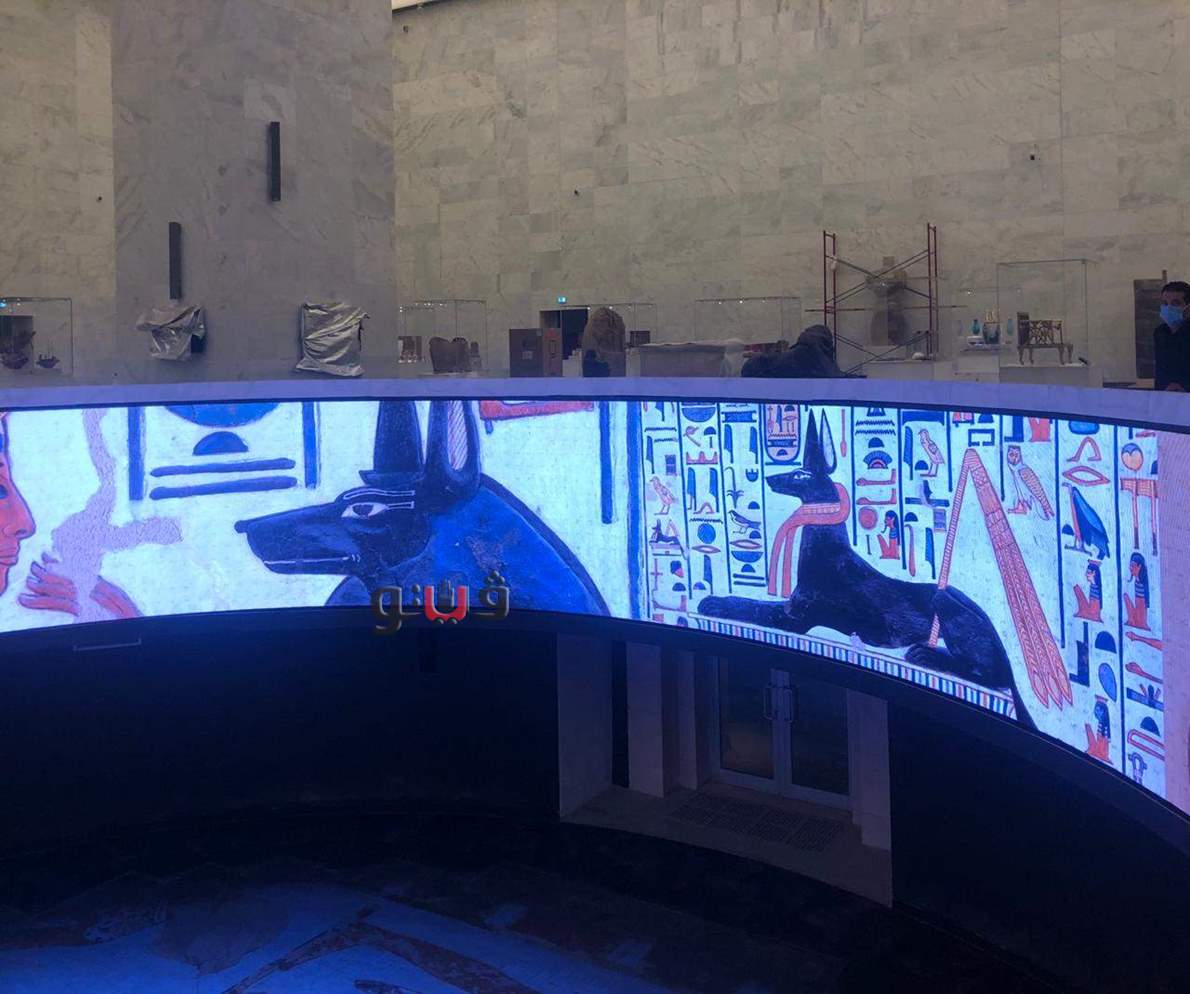 كما تفقد وزير السياحة والآثار عرض المالتيميديا الخاص بالمتحف والذي يعتبر جزءا مكملا لسيناريو العرض المتحفي ، فهو من أهم المؤثرات البصرية في العرض حيث يعتمد على الإبهار في عرض المحتوى الذي يمهد للزائرين الدخول إلى القاعة الأهم في المتحف وهي قاعة المومياوات الملكية.