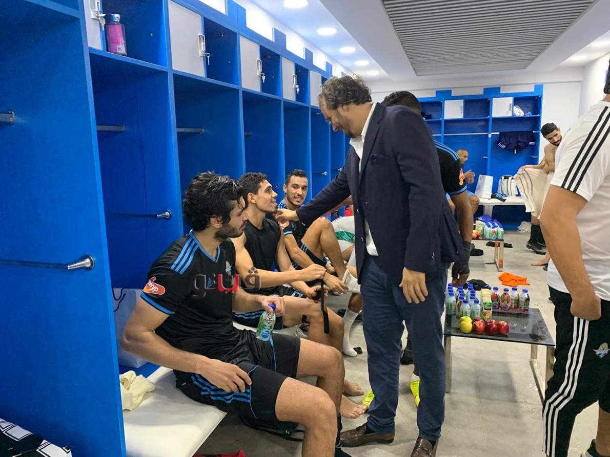 وبمجرد إطلاق الحكم صافرة النهاية حرصممدوح عيد المدير التنفيذي لنادي بيراميدز ومعه هاني سعيد المدير الرياضي على النزول لغرفة الملابس وتهنئة اللاعبين وجهازهم الفني على الفوز الكبير والعرض الكروي الرائع.