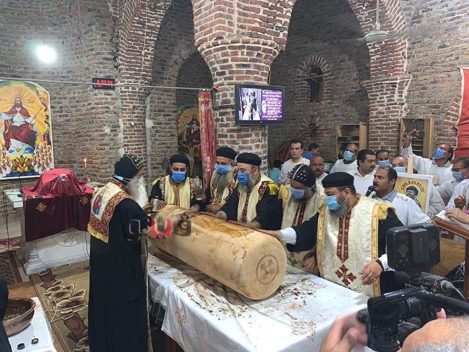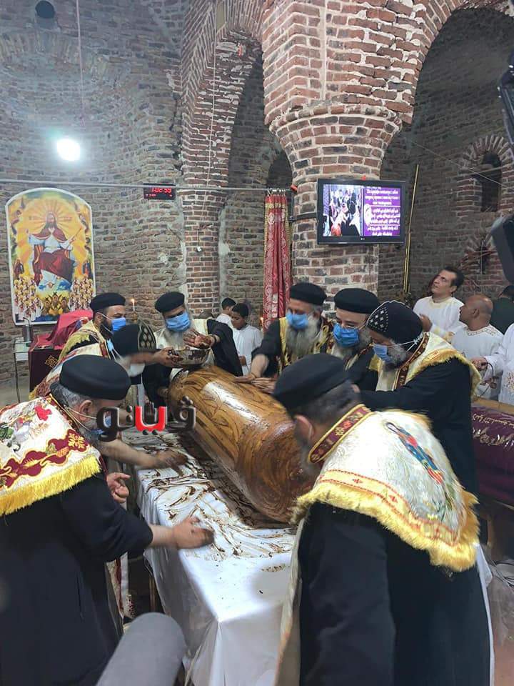 وأوضح "حليم"، أنه في إطار متابعة الوضع الصحي وانتشار جائحة فيروس "كورونا"، وقرارات رئيس مجلس الوزراء الأخيرة، تم اتخاذ 6 قرارات على النحو التالي: يقوم الأب الأسقف مع مجمع الكهنة في كل إيبارشية بتقدير الموقف الصحي من حيث استمرار أو تعليق القداسات بالكنائس لمدة أسبوعين أو أكثر أو فتحها رية الأساس بنقادة، رفات السراج المنير الأنبا أثناسيوس أسقف قوص، وذلك من دير الشهيد العظيم ماربقطر بحجازة.