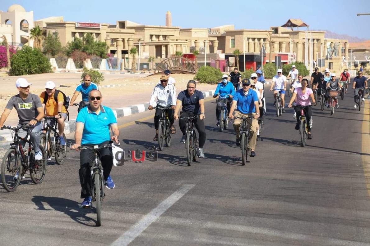 شارك الدكتور خالد العناني وزير السياحة والآثار، والطيار محمد منار وزير الطيران المدني، و 30 سفيرا من سفراء الدول الأجنبية في مصر بماراثون للدراجات الهوائية والتي نظمته وزارة السياحة والآثار اليوم الجمعة بمدينة شرم الشيخ للاحتفال بيوم السياحة العالمي.