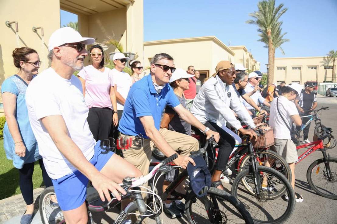شارك الدكتور خالد العناني وزير السياحة والآثار، والطيار محمد منار وزير الطيران المدني، ٣٠ سفيرا من سفراء الدول الأجنبية في مصر بماراثون للدراجات الهوائية والتي نظمته وزارة السياحة والآثار اليوم الجمعة بمدينة شرم الشيخ للأحتفال بيوم السياحة العالمي.