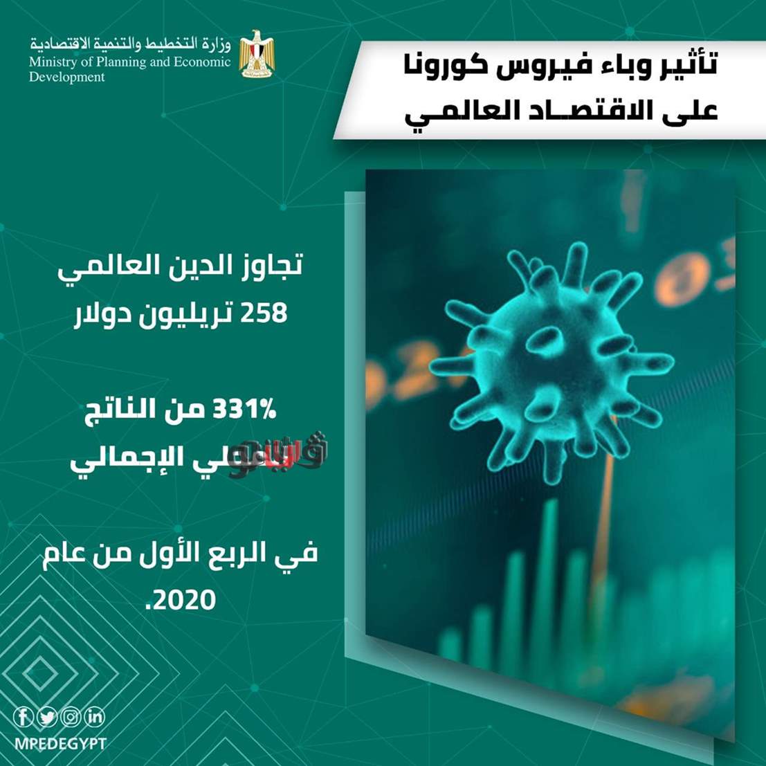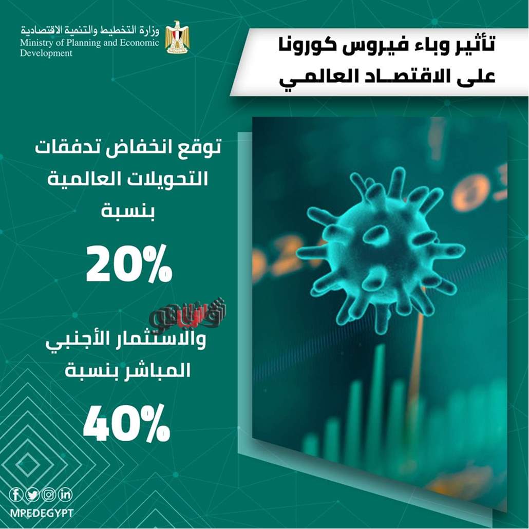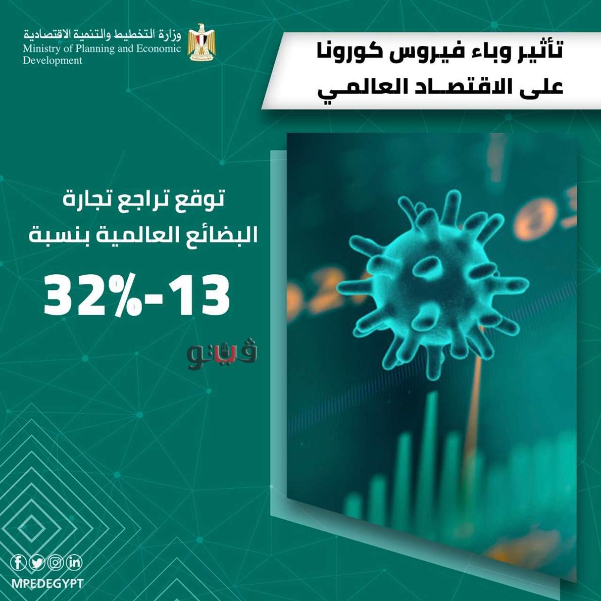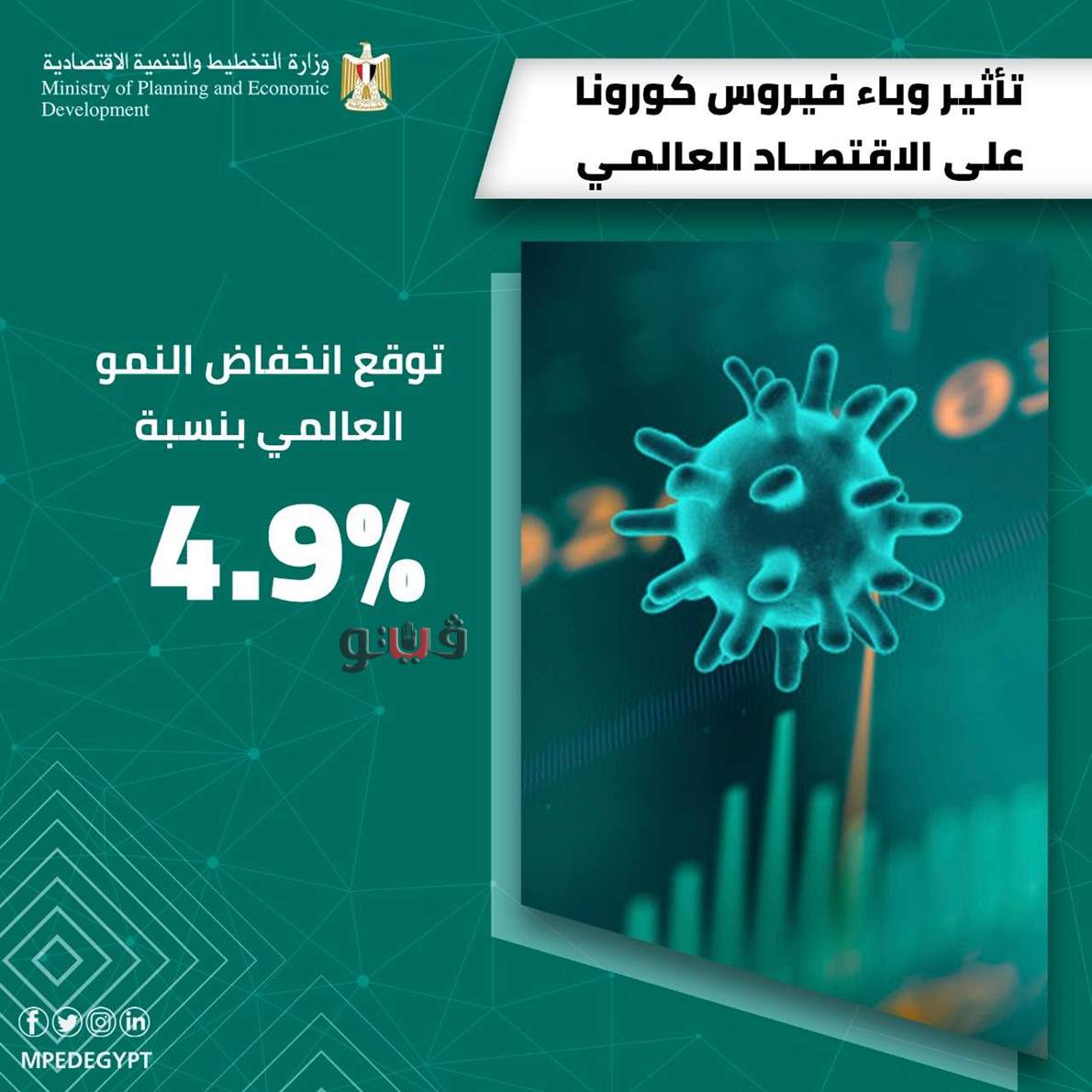 نشرت وزارة التخطيط والتنمية الاقتصادية عبر منصاتها للتواصل الاجتماعي مجموعة من الإنفوجرافات توضح فيها تأثير جائحة فيروس كورونا على مؤشرات الاقتصاد العالمي.
