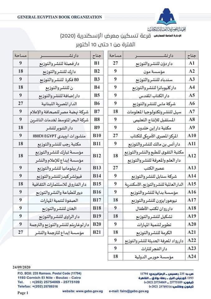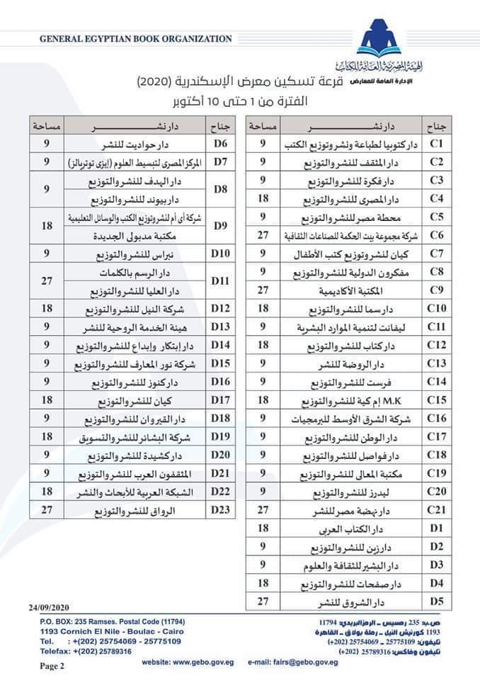 العامة للكتاب عن نتيجة قرعة تسكين دور النشر في معرض الإسكندرية للكتاب، والمقرر