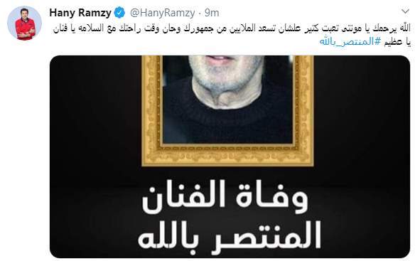 وكتب هاني رمزي قائلا: "الله يرحمك يا مونتى تعبت كتير علشان تسعد الملايين من جمهورك وحان وقت راحتك مع السلامة يا فنان يا عظيم".
