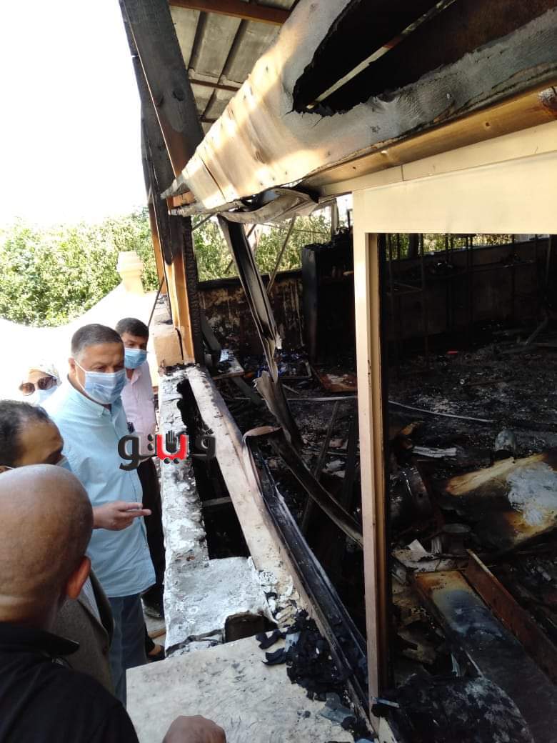 رئيس جامعة بنها يتفقد موقع حريق كافتيريا كلية التربية