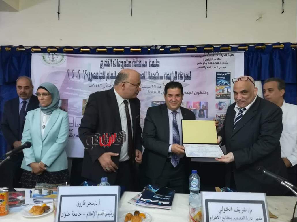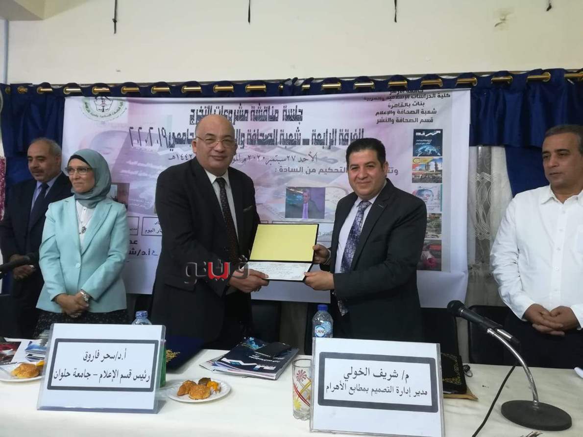 جدير بالذكر أنه شارك في تقييم مشاريع التخرج ومناقشتها كلٌّ من: الدكتورة سحر فاروق، رئيس قسم الإعلام بجامعة حلوان، والدكتور أحمد زارع، وكيل كلية الإعلام السابق، المتحدث الرسمي للجامعة، ومحمد الحداد، مدير تحرير أخبار اليوم، والمهندس شريف الخولي، مدير إدارة التصميم بمطابع الأهرام، والاستاذ حسين أبو عايد رئيس تحرير مجلة الرواق.