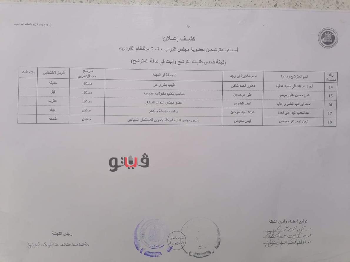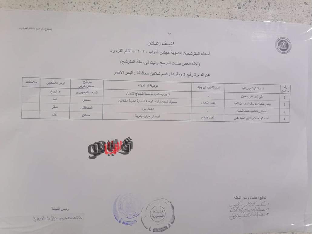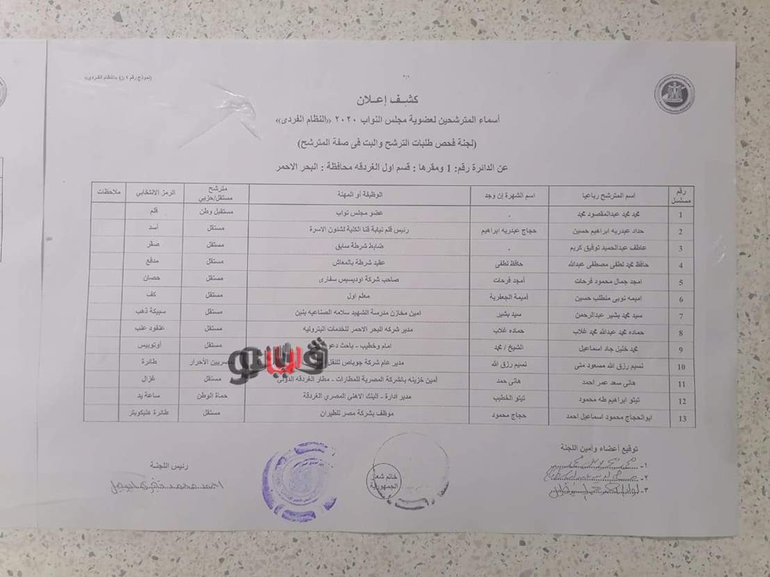 وأعلنت اللجنة أسماء ١٨ مرشحًا في الدائرة الأولى رأس غارب الغردقة.