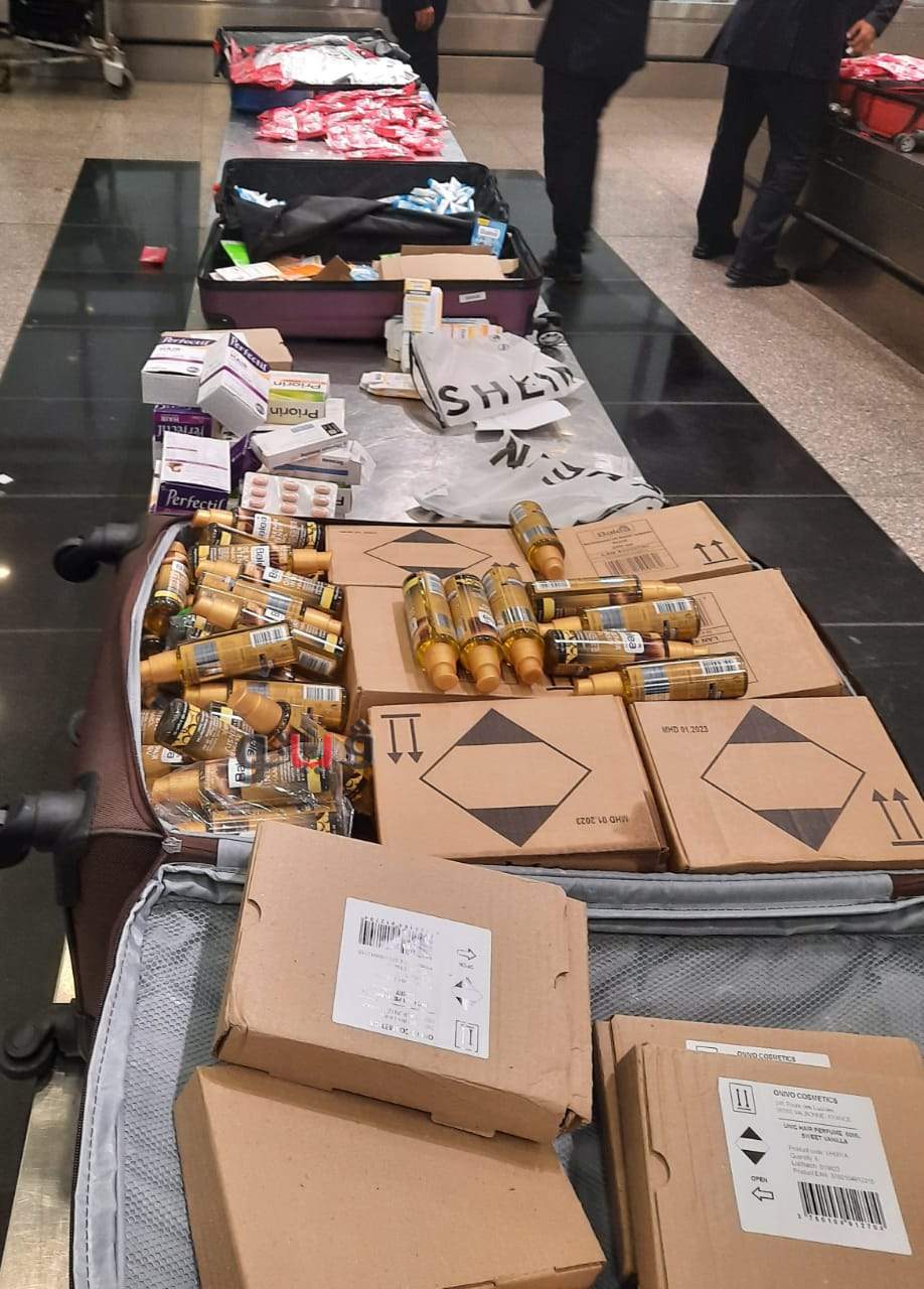 مستغلة الزحام.. إحباط تهريب مستحضرات تجميل بحوزة راكبة بمطار القاهرة | صور