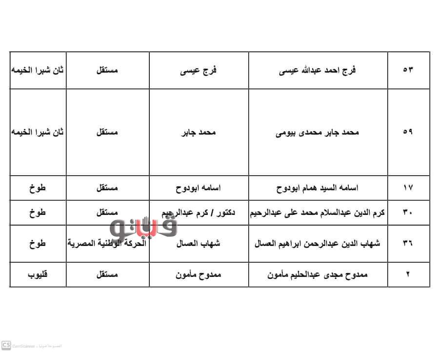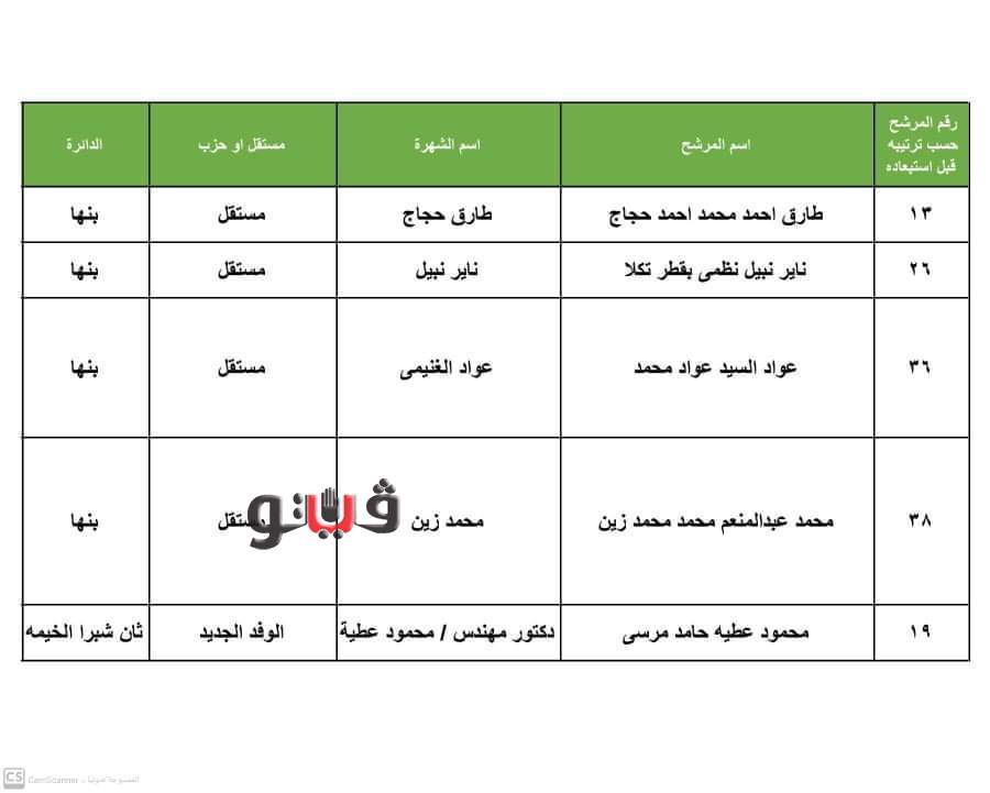 كما أظهرت الكشوف أن المستبعدين ينتمون لأحزاب الوفد الجديد والحركة الوطنية ومستقبل وطن والباقي من المستقلين وجاء توزيع المستبعدين علي الدوائر كالتالي 4 بدائرة بنها وكفر شكر و3 بدائرة قسم ثان شبرا الخيمة و3 بدائرة طوخ و3 بدائرة قليوب و3 بالخانكة وواحد بدائرة شبين القناطر.