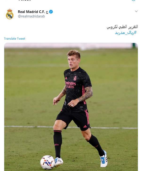 وقال نادي ريال مدريد، عبر موقعه الرسمي بتويتر، إنه سيتم مراقبة تطور حالة توني كروس بعد تأكيد إصابته في العضلة الألوية الوسطى اليسرى.