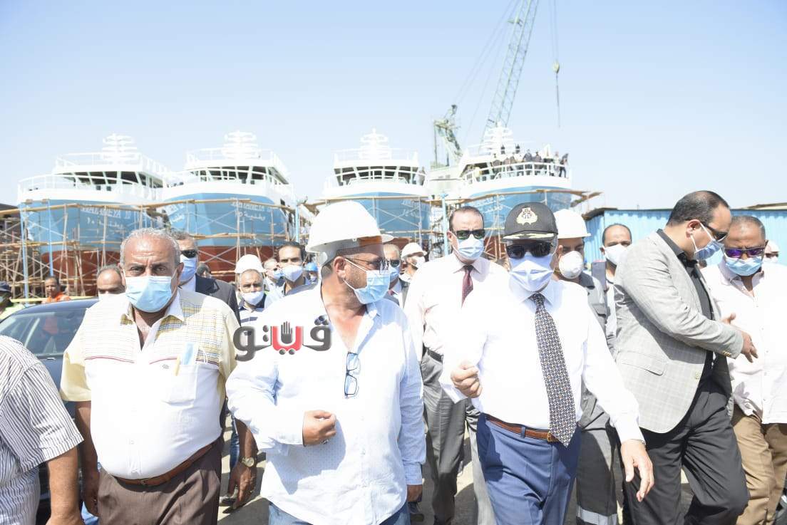وتضمنت جولته بشركة القناة للإنشاءات البحرية تفقد كل من القاطرتين "نور ١" والقاطرة" نور ٢ " بقوة شد 8 طن، و سفينتي صيد تم تدشينهما وإنزالهما إلى المياه، كما تابع أعمال بناء ١٠سفن أخرى على الرصيف منهم أربع سفن