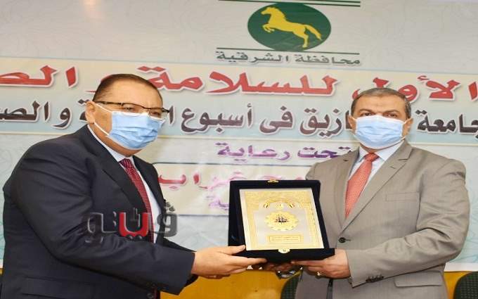 كما قدم رئيس الجامعة درع الجامعة لكلٍ من وزير القوى العاملة ومحافظ الشرقية تقديراً لدورهما في الإهتمام بإجراءات السلامة والصحة المهنية داخل قطاع المستشفيات الجامعية والمنشآت الحكومية لخلق بيئة عمل مناسبة للجميع.