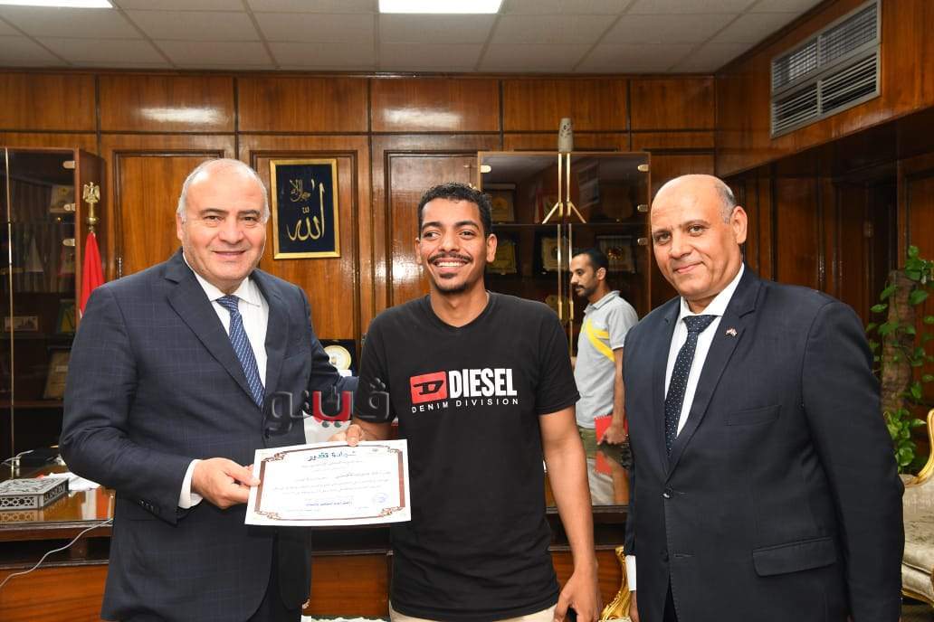 محافظ قنا يكرم طالب القصب وشقيقه لتفوقهم العلمي | صور