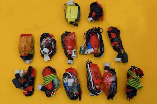 وضُبط عدد (1) حقيبة تحتوي معدات تنظيف أسلحة، عدد (14) سلاح أبيض قتالي (سكين)، ملابس عسكرية، عدد (2) منظار قناصة، عدد (1) منظار ليلي، عدد (3) أجهزة اتصال لاسلكي، عدد (1) جهاز كمبيوتر محمول، عدد (2) جهاز خرائط قارمن، عدد (1) نظارة شمسية مزودة بكاميرا تصوير وذاكرة تخزين وبطارية.
