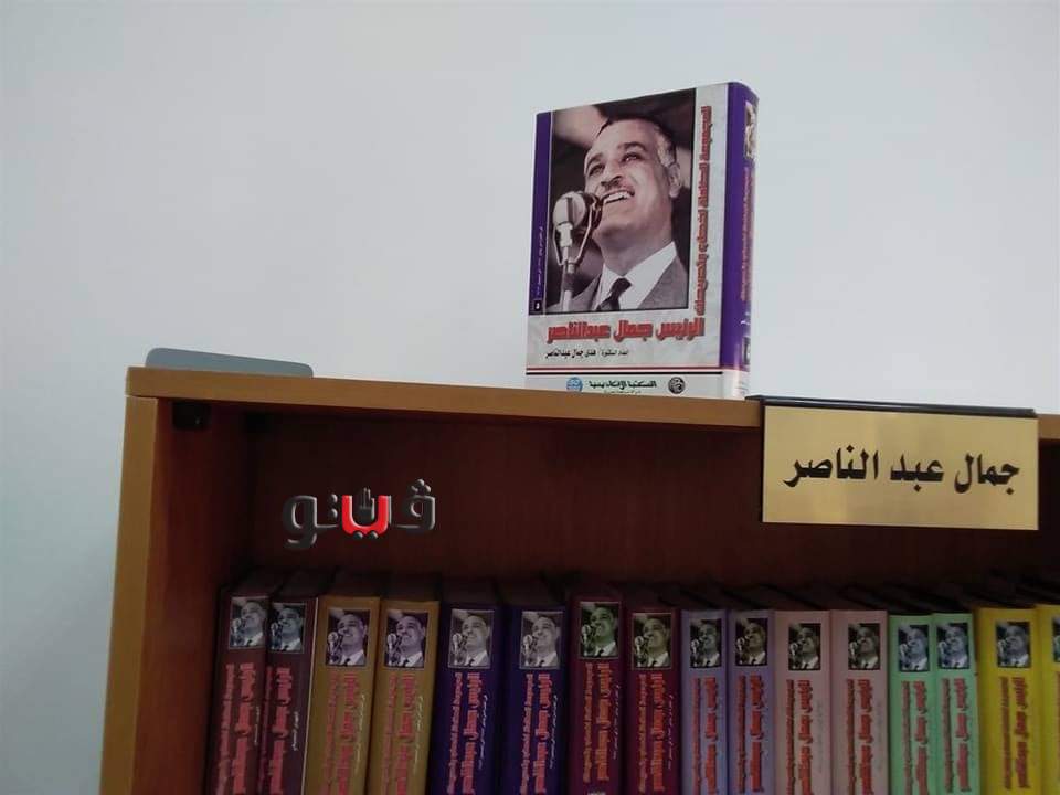 وسيرته التاريخية جميعها داخل المكتبة منها كتبا أعدتها ابنته الدكتورة هدى عبد الناصر،60 عاما علي ثورة يوليو الأوراق الخاصة، عبد الناصر واليسار المصري للدكتور فؤاد زكريا، ومجموعة أخري عن عبد الناصر والسياسة الخارجية دكتور محمد عبد الوهاب،أربعون عاما علي حرب الاستنزاف،معركة بناء السد العالي وتأثيره الاقتصادي،عبد الناصر والشيوعية للدكتور عبد العظيم رمضان،الزعيم في قلوب الشعراء جمع وتحقيق حسن توفيق، وجمال عبد الناصر من القرية إلي الوطن العربي الكبير،جمال عبد الناصر في عيون الصحافة،وسجل حافل لصور من حياة الزعيم منذ طفولته وحتى وصوله إلي رئاسة مصر.