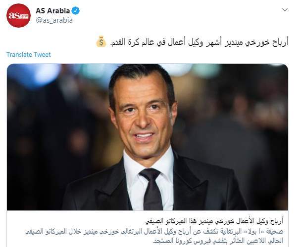 كشفت صحيفة "AS" الإسبانية عن الأرباح التي يتحصل عليها رجل الأعمال البرتغالي خورخي مينديز، أحد أقوى وكلاء اللاعبين في عالم كرة القدم وصاحب شركة "جيستيفوت"، التي ينقل من خلالها جزءًا كبيرًا من نجوم البرتغال إلى نوادي العالم، واستطاع نقل اللاعبين لأوروبا مقابل مبالغ كبيرة من المال.