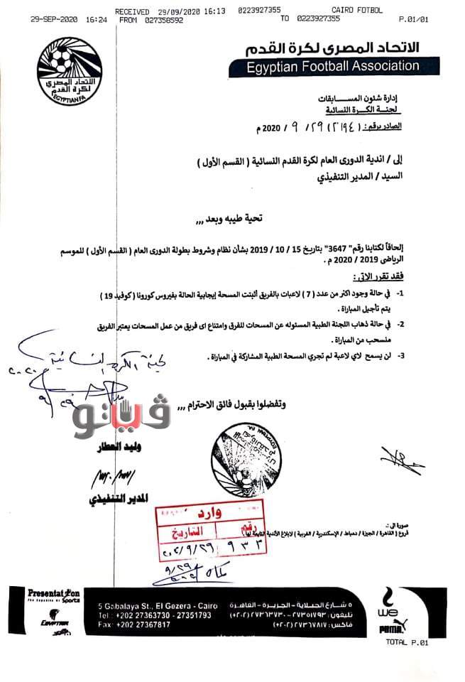 وأخطرت الجبلاية الفروع والأندية بشأن نظام وشروط بطولة الدوري العام للكرة النسائية للموسم الرياضي 2019 -2020 في ظل إجراءات كورونا.