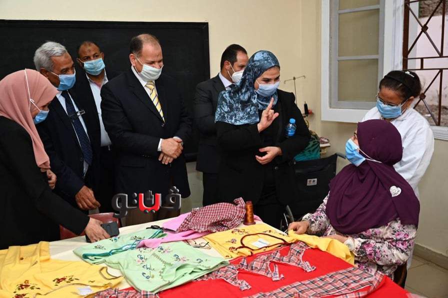 ويضم المركز مجموعة من الأنشطة منها معرض للمنتجات الأسرية (ملابس ومشغولات يدوية ومفروشات للمنزل)، كما تفقد الجانبان ورشة لإنتاج الكمامات بأسعار مخفضة ينتجها أبناء وفتيات المركز بأسعار في متناول المواطنين وذلك في إطار مشاركة المركز في التصدي لجائحة كورونا.