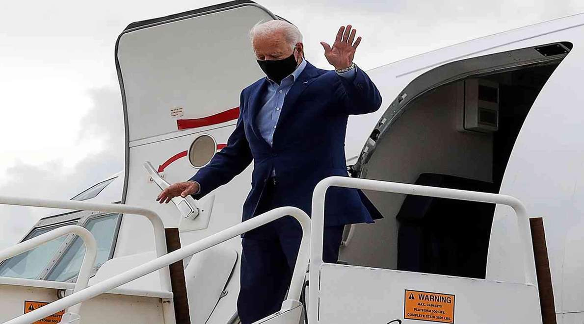 ودشّن نائب الرئيس الأمريكي السابق للمناسبة طائرة حملته الرئاسية التي تحمل شعار "بايدن-هاريس" (اسم كل من المرشح الديمقراطي وشريكته في السباق كامالا هاريس التي اختارها نائبة له) باللونين الأزرق والأحمر.